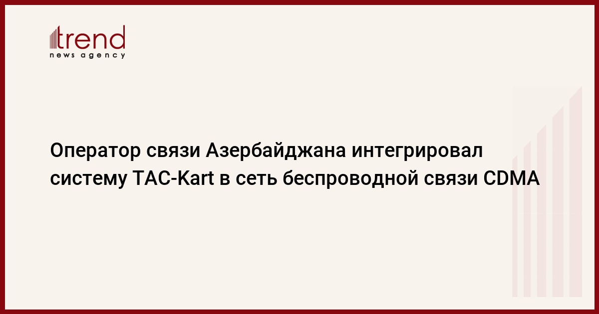 Производственное объединение Aztelekom министерства связи и информационных технологий интегрировало систему TAC-Kart в сеть беспроводной связи CDMA для осуществления оплаты услуг оператора, говорится в сообщении министерства.
