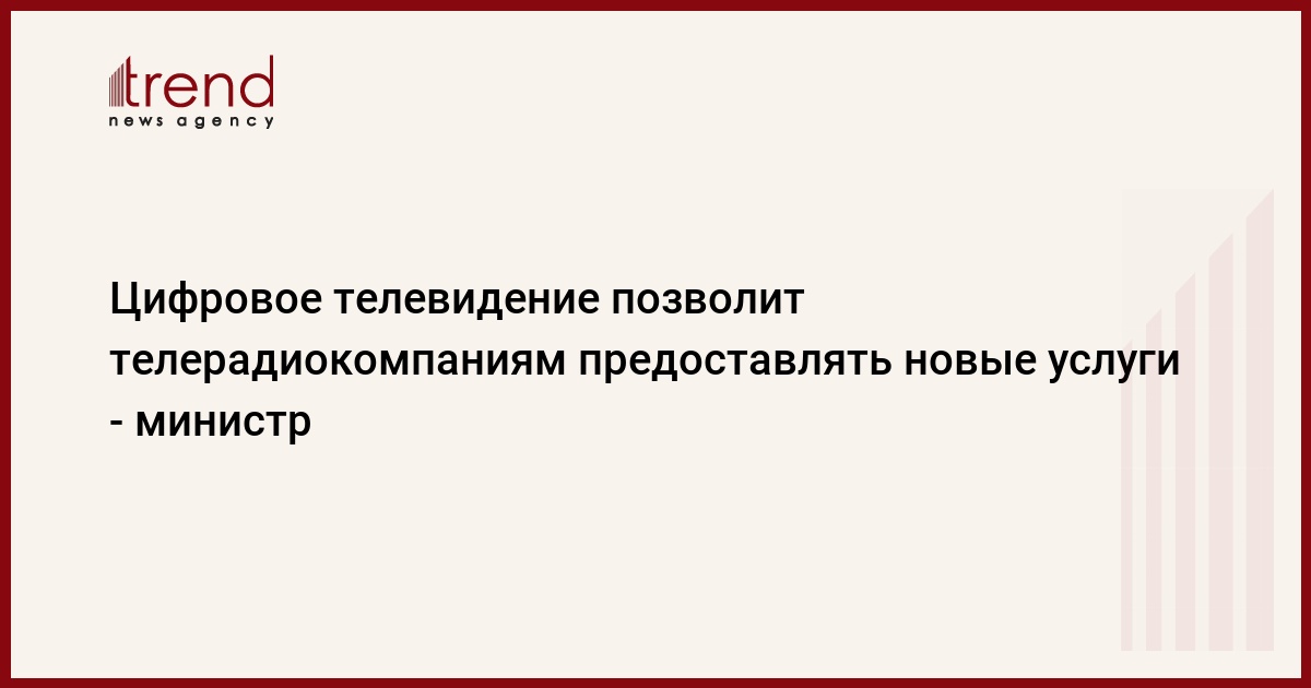 "Сегодня основным доходом этих компаний является реклама. После запуска цифрового телевидения их возможности будут расширены и они смогут оказывать услуги электронной коммуникации, связи и информационных линий, электронного образования, медицины, коммерции", - сказал министр.