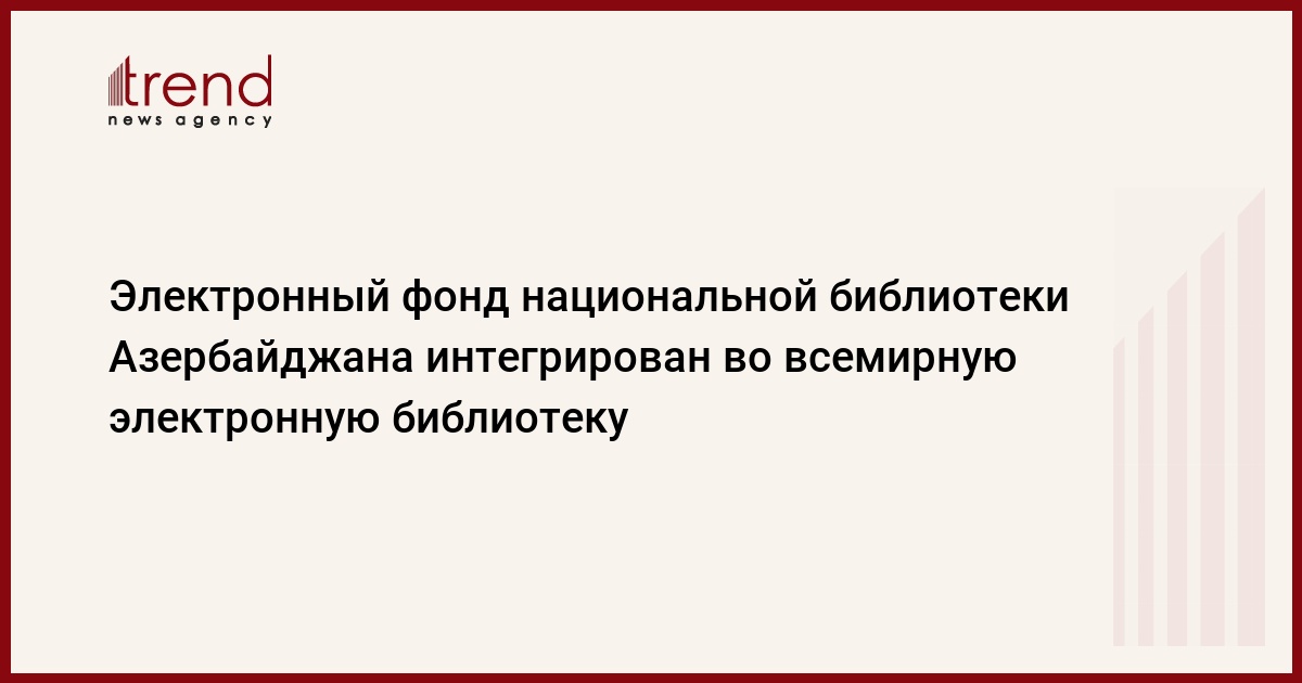 Электронный фонд национальной библиотеки имени Мирза Фатали Ахундова полностью интегрирован во всемирную электронную библиотеку (World Digital Library), сказали Trend в национальной библиотеке.