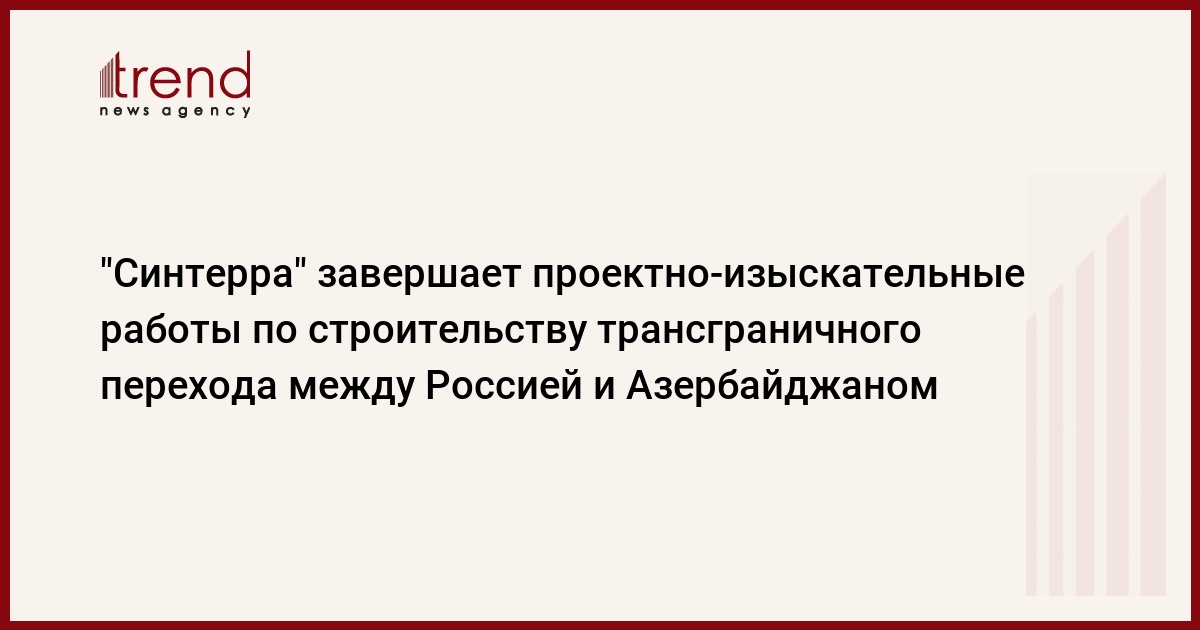 Проектно-изыскательные работы по строительству трансграничного перехода между Россией и Азербайджаном на участке Дербент-Губа находятся на стадии завершения, сказала Trend пресс-секретарь группы компаний "Синтерра" Екатерина Андреева.