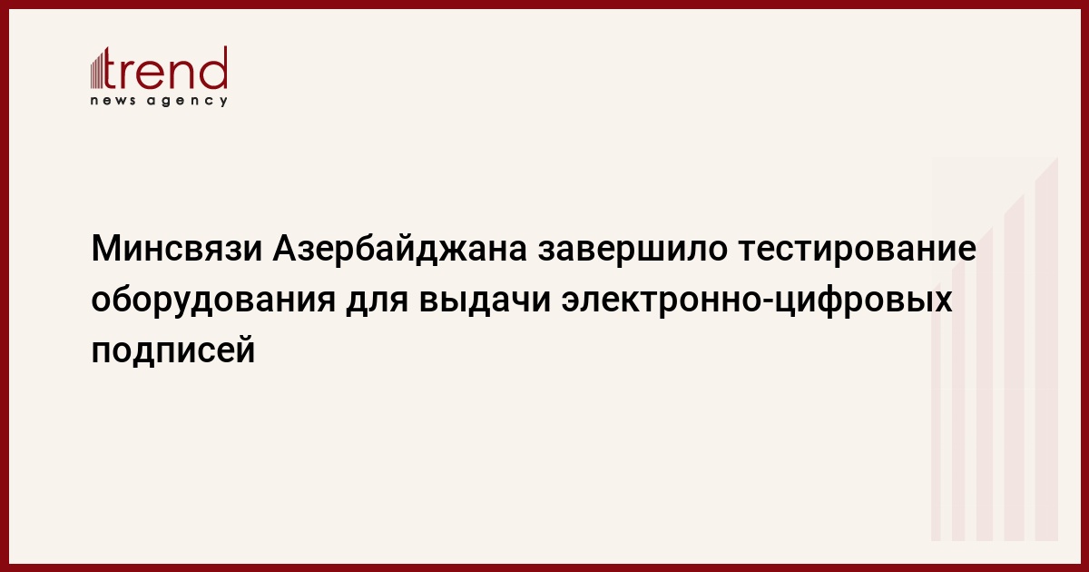 Министерство связи и информационных технологий Азербайджана завершило тестирование оборудования для выдачи ключей электронно-цифровых подписей (ЭЦП), говорится в сообщении министерства.