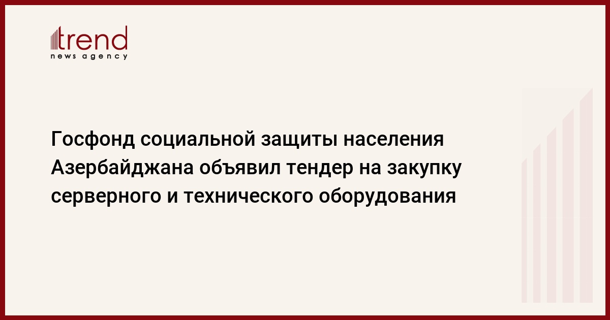 Государственный фонд социальной защиты населения Азербайджана объявил тендер на закупку серверного и технического оборудования для построения корпоративной сети, объединяющей аппарат фонда с местными органами, говорится в сообщении тендерной комиссии.