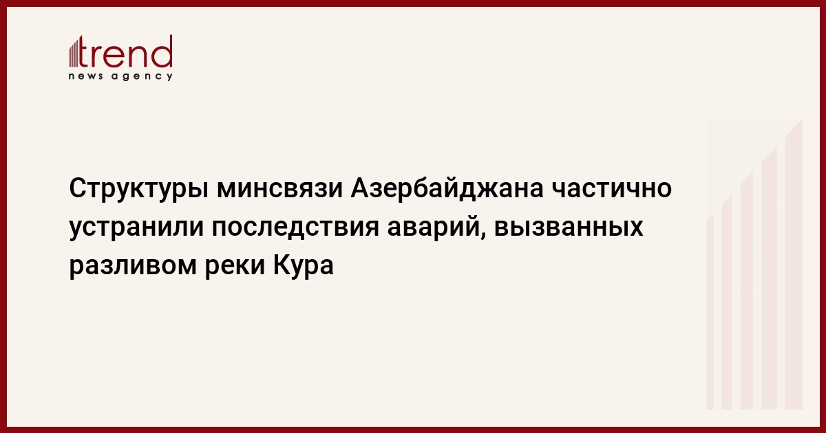 Производственное объединение Aztelekom министерства связи и информационных технологий Азербайджана завершило работы по устранению последствий аварий, произошедших в результате стихийного бедствия, вызванного повышением уровня воды в реке Кура, говорится в среду в сообщении министерства.
