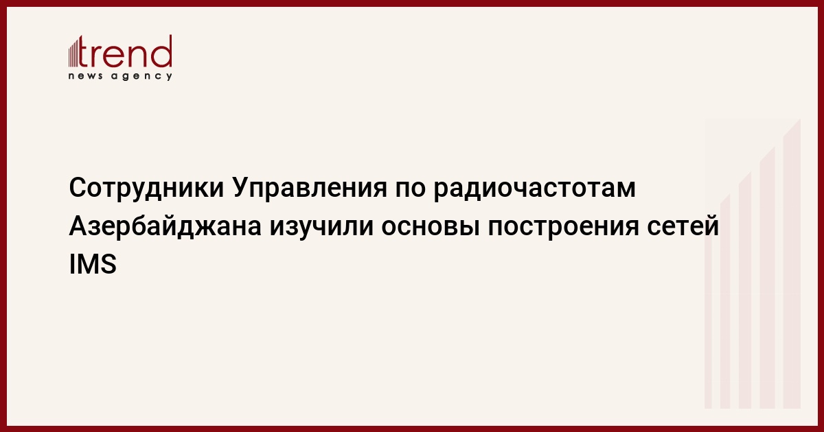 Инженерами Государственного управления по радиочастотам (ГУР) министерства связи и информационных технологий Азербайджана были изучены основы построения сетей связи на базе решений IMS (IP Multimedia Subsystem), говорится в четверг в сообщении Регионального содружества связи (РСС).