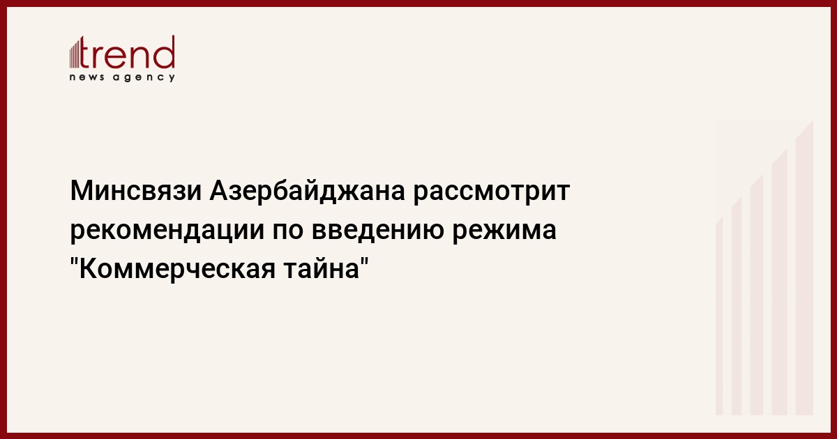 Министерство связи и информационных технологий Азербайджана рассмотрит методику введения режима "Коммерческая тайна" на предприятиях операторов связи, сказали Trend в четверг в министерстве.