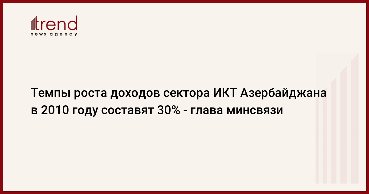 До конца года темпы роста доходов сектора информационно-коммуникационных технологий Азербайджана составят 30 процентов, сказал в понедельник министр связи и информационных технологий Азербайджана Али Аббасов.