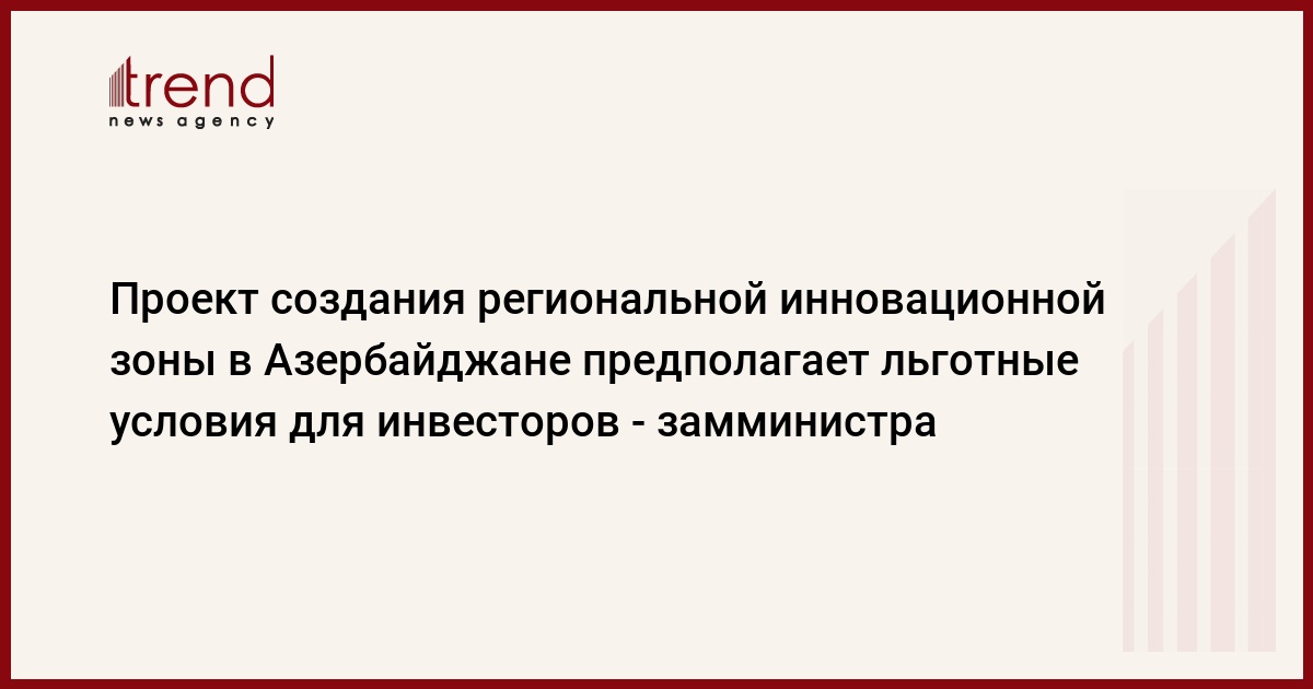 В проекте создания региональной инновационной зоны (РИЗ) в Азербайджане для инвесторов предусмотрен ряд преимуществ, в числе которых упрощение таможенных процедур, освобождение от НДС и таможенных пошлин, внедрение свободного налогообложения, выдача льготных кредитов для стимулирования экспорта и другие, сказал в четверг на саммите азербайджанских инвесторов - The Azerbaijan Investors Summit 2011 заместитель министра связи и информационных технологий Азербайджана Эльмир Велизаде.