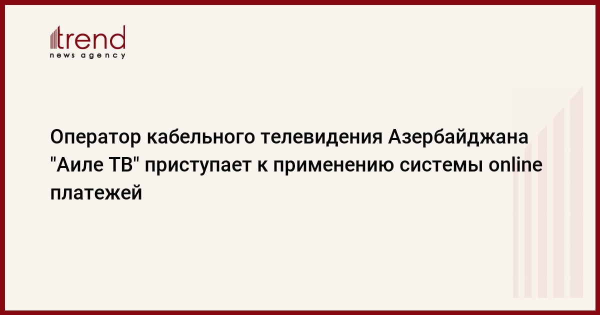 Оператор кабельного телевидения Азербайджана "Аиле ТВ", приступила к техническим работам по внедрению системы online платежей за услуги кабельного телевидения, говориться в пятницу в сообщении компании.