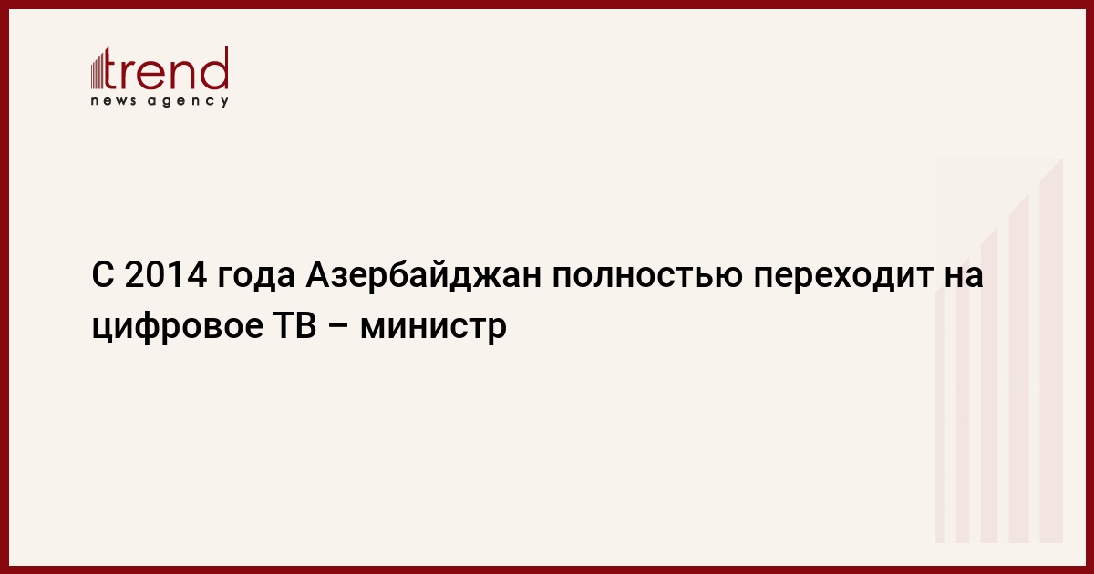 По его словам, начиная с 2014 года, телевидение Азербайджана будет полностью транслироваться в цифровом формате.