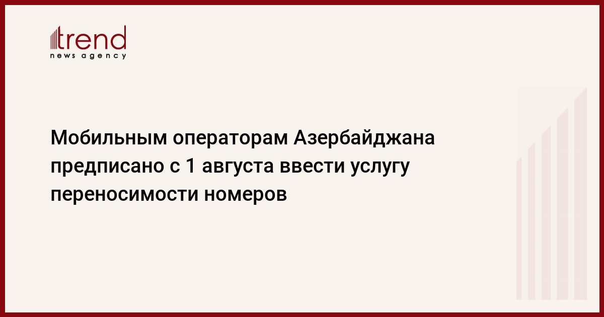 "Решение об этом было принято министерством накануне. Полагаю, что у мобильных операторов страны есть все необходимые для этого возможности и они успеют внедрить услугу переносимости номеров для своих абонентов в установленный срок", - сказал Аббасов.