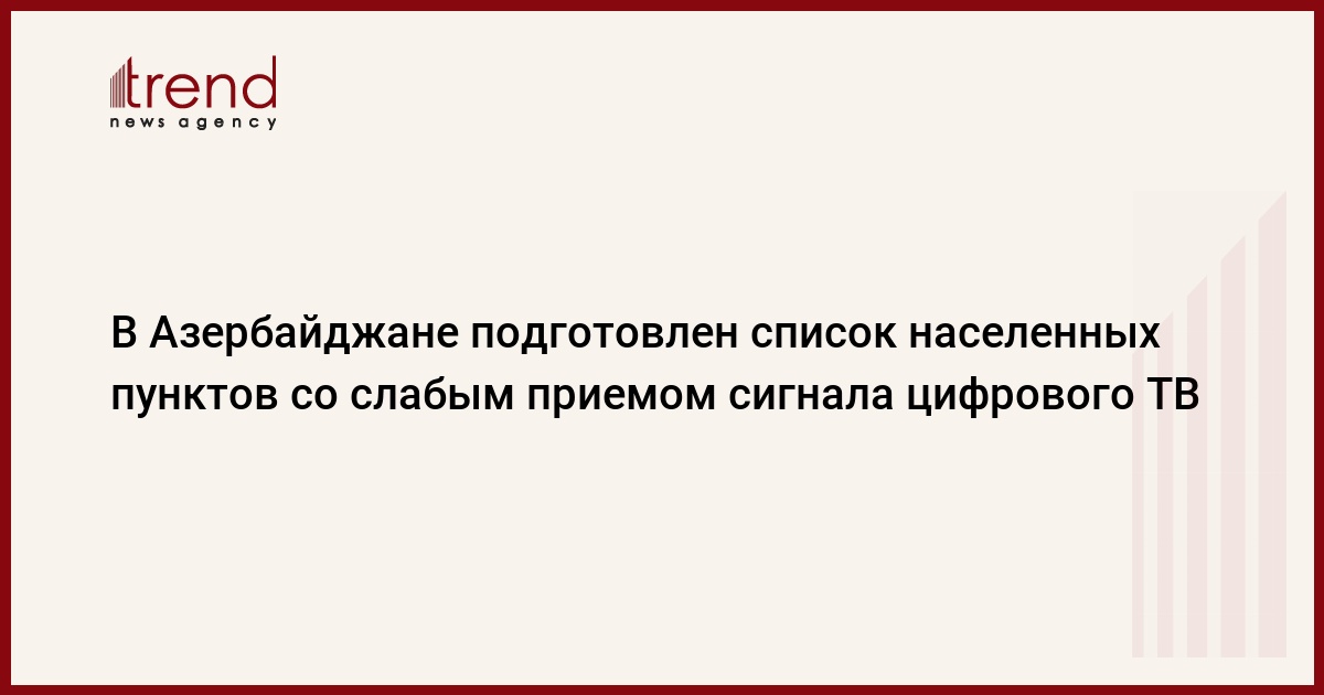 БАКУ /Trend/ - Государственное управление по радиочастотам (ГУР) Азербайджана определило населенные пункты со слабым приемом сигнала цифрового телевидения, сказали в четверг Trend в ГУР.