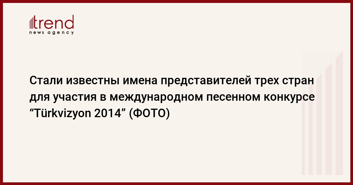 БАКУ /Trend/ - Стали известны имена представителей Азербайджана, Татарстана и Молдовы для участия в международном песенном конкурсе "Türkvizyon 2014", проводимом при организационной поддержке известного регионального музыкального телеканала тюркоязычных стран TMB TV.