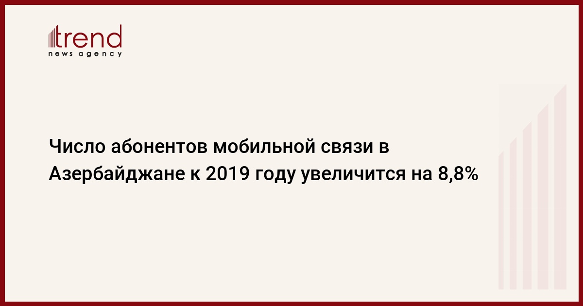БАКУ /Trend/ - До конца 2018 года число абонентов мобильной связи в Азербайджане, согласно прогнозам, увеличится на 8,8 процента, сказал Trend в понедельник источник в правительстве.