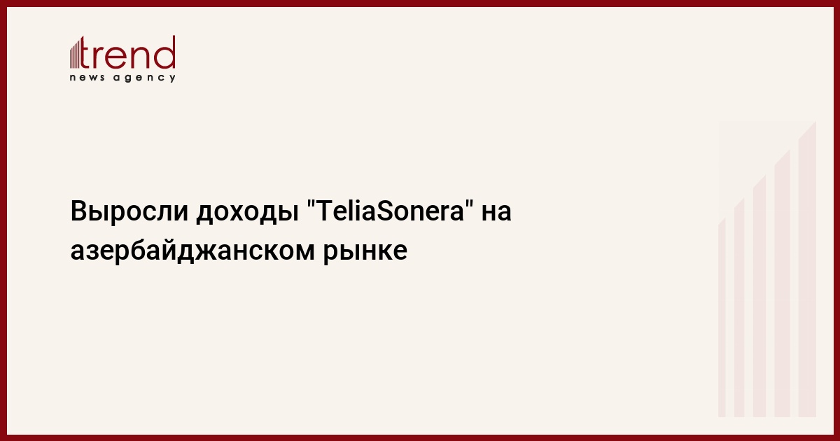БАКУ /Trend/ - По итогам января-марта 2015 года доходы компании TeliaSonera на азербайджанском рынке увеличились на 14,1 процента по сравнению с аналогичным периодом прошлого года. Об этом говорится в отчете компании TeliaSonera по итогам первого квартала 2015 года.