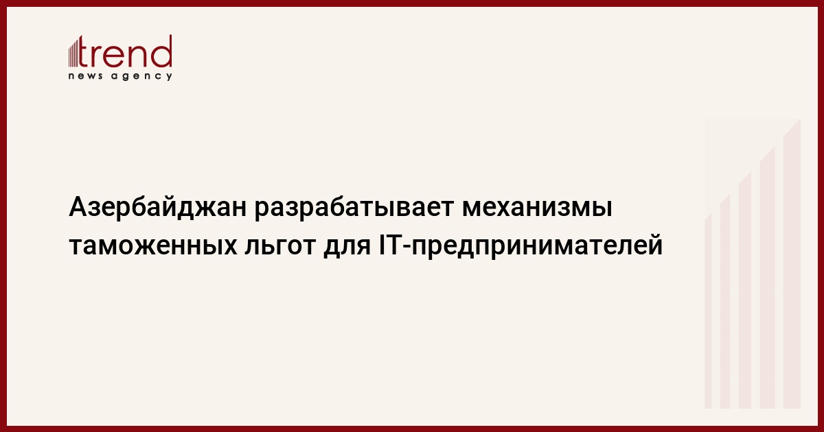 БАКУ /Trend/ - В Азербайджане разрабатываются механизмы применения таможенных льгот для будущих резидентов "Парка высоких технологий". Об этом сказал Trend источник на телекоммуникационном рынке страны.