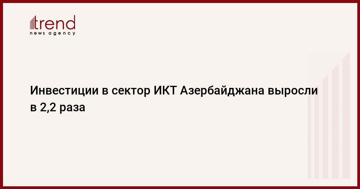 БАКУ /Trend/ - Инвестиции в сектор информационно-коммуникационных технологий Азербайджана в январе-сентябре 2015 года по сравнению с аналогичным периодом прошлого года выросли в 2,2 раза. Об этом было сказано в ходе прошедшего в четверг заседания коллегии министерства связи и высоких технологий Азербайджана по итогам девяти месяцев 2015 года.