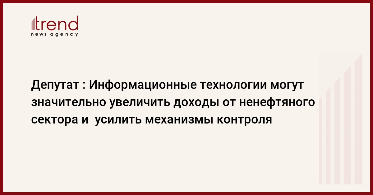 Ро словам депутата, по данным статистки, только за последние 5 лет инвестиции в ИТ сектор Азербайджана превысили 2 миллиарда долларов и, благодаря этому, в 2014 году доходы ИТ сектора составили 1.6 миллиардов манат. Однако, в мировой практике возврат инвестиций, вложенных в ИТ сектор происходит, как правило, в течении 3х-5-ти лет. Основываясь на этом, а также на специфике получения прибыли для данного сектора, в последующие годы доход от ИТ сектора может возрасти минимум в 2 раза. Надо сказать, что для достижения этого результата уже были сделаны необходимые шаги, которые можно, без преувеличения, назвать инвестициями в будущее. Так, указом Президента Азербайджана был создан парк высоких технологий, освобожденный от налоговых и таможенных пошлин.