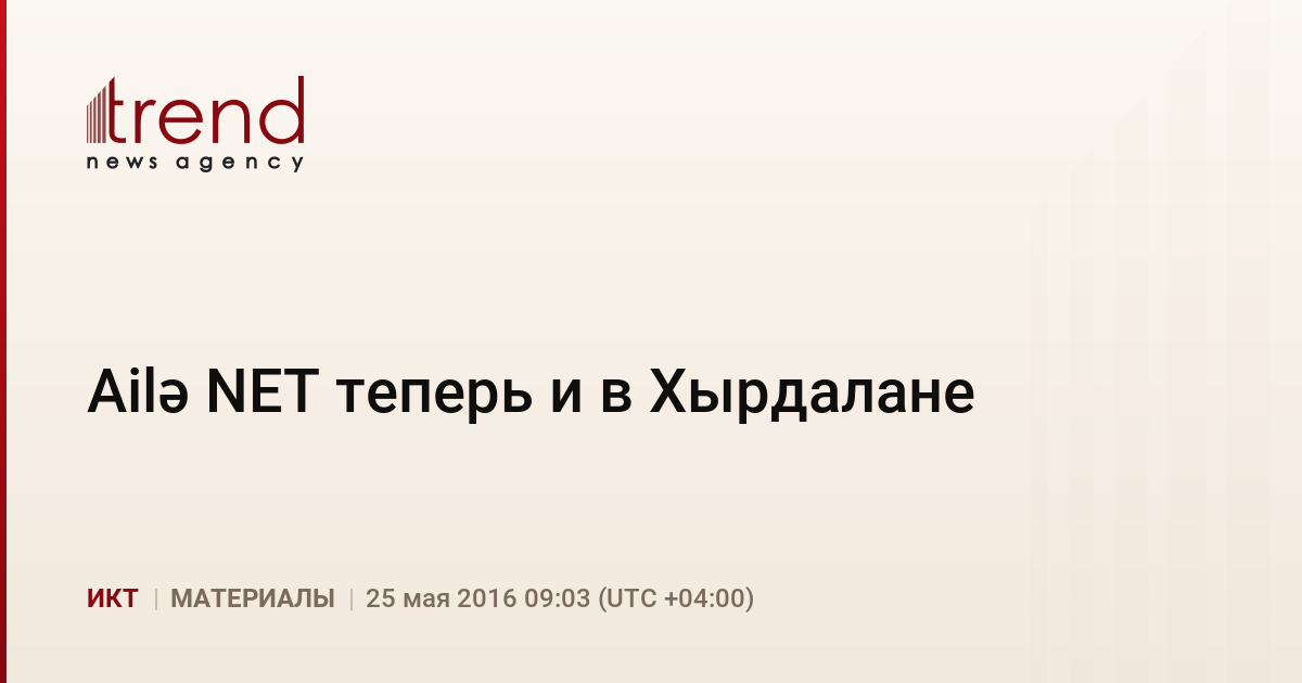 БАКУ /Trend/ - Теперь и жители города Хырдалан смогут подключиться к высокоскоростному оптоволоконному интернету от Ailə NET.