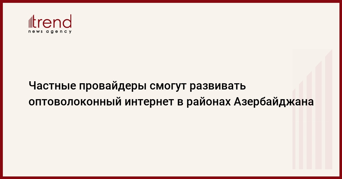БАКУ /Trend/ - Частные интернет провайдеры получат возможность подключать своих пользователей по принципу "Оптика в дом" в районах Азербайджана, сказал Trend источник на телекоммуникационном рынке страны.