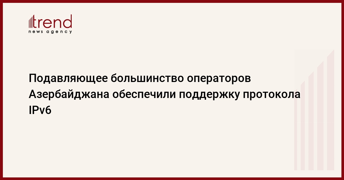 БАКУ /Trend/ - Подавляющее большинство операторов связи и интернет-провайдеров Азербайджана завершили технические процедуры по переходу на интернет-протокол IPv6, сказал Trend источник на телекоммуникационном рынке страны.