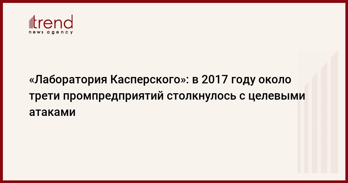 БАКУ /Trend/ - Согласно данным исследования «Лаборатории Касперского»*, в 2017 году одной из самых быстрорастущих угроз для промышленности стали целевые атаки. За 12 месяцев 2017 года с целевыми атаками столкнулись 28 процентов индустриальных предприятий в мире — в 2016 году их было всего 20 процентов. Эти цифры подтверждают прогнозы экспертов KasperskyLabICSCERT о том, что в 2018 году появится и получит распространение вредоносное ПО, эксплуатирующее уязвимости в компонентах систем автоматизации.