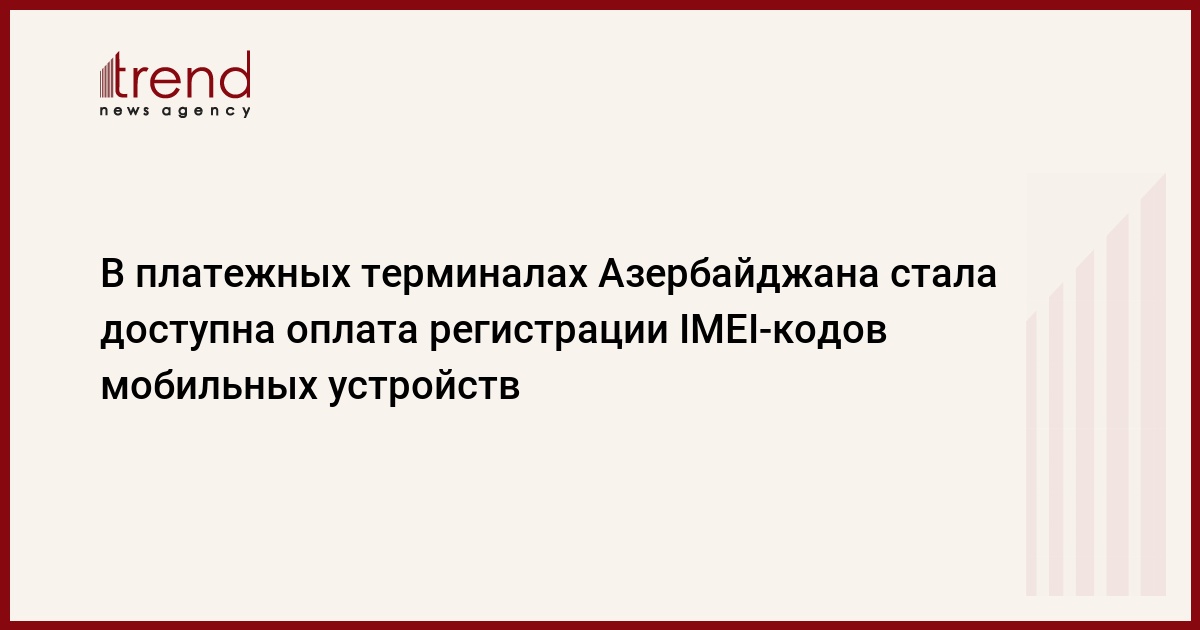По словам собеседника агентства, оплатить стоимость регистрации IMEI-кодов мобильных устройств можно как online (посредством сайта e-govpay.az), так и посредством терминалов e-GovPay, которые в основном установлены в некоторых отделениях Azerpoct и в телекоммуникационных узлах госоператоров связи. Посредством терминалов e-GovPay можно производить оплату коммунальных услуг, услуг связи, телевидения, интернета и т.д.