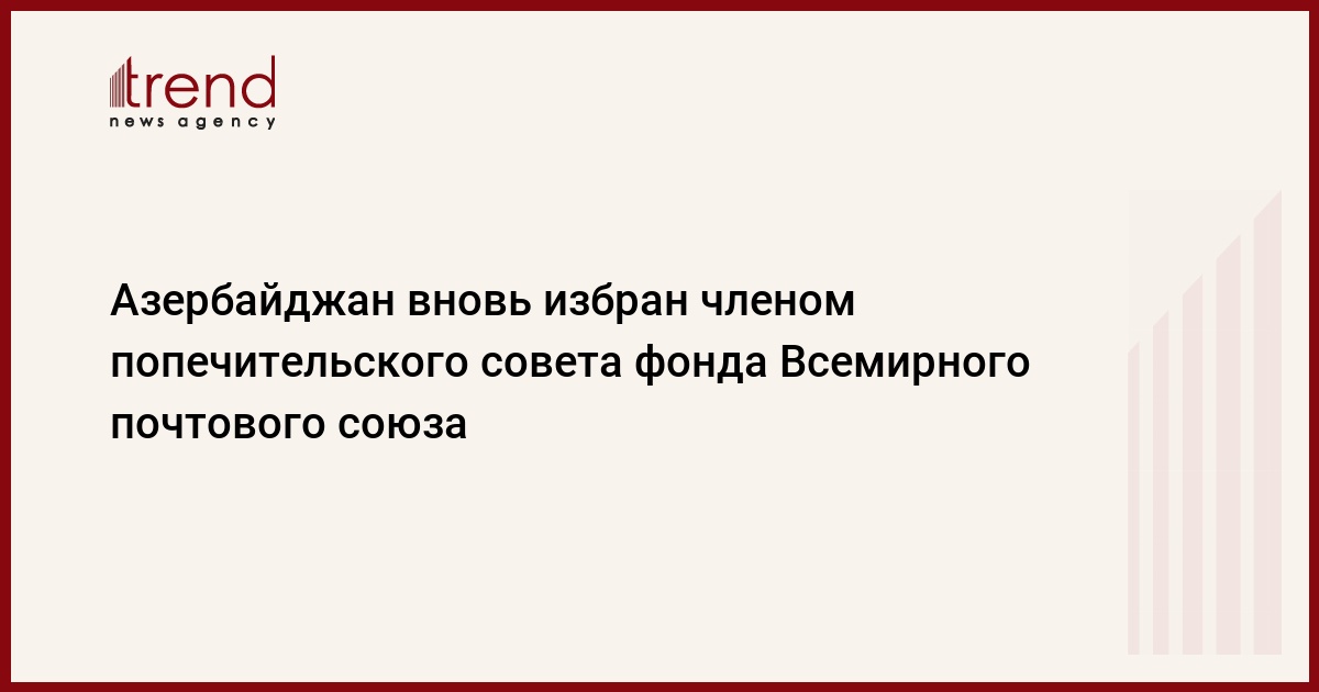 БАКУ /Trend/ - Почтовая администрация Азербайджана избрана членом Попечительского совета Фонда улучшения качества службы (Quality of Service Fund - QSF) Всемирного почтового союза (ВПС), сказали Trend в среду в министерстве транспорта, связи и высоких технологий.