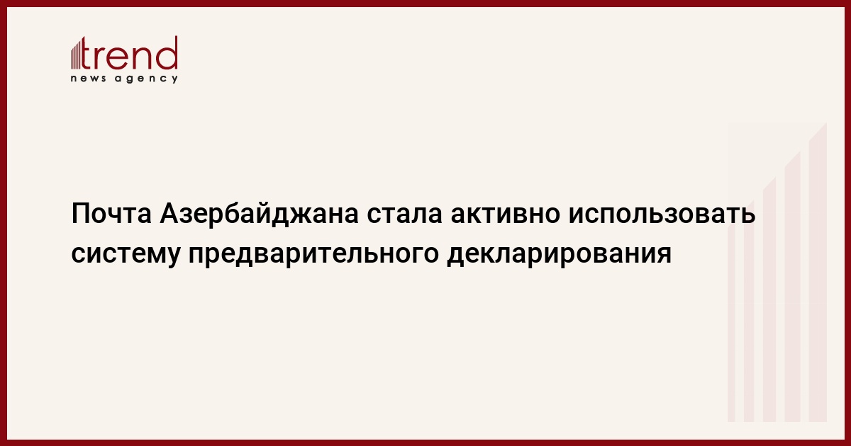 БАКУ /Trend/ - Оператор почтовой связи Азербайджана - ООО Azerpoct – стал активно использовать систему Customs Declaration System (CDS) Всемирного почтового союза (ВПС), сообщил Trend в источник на рынке почтовой связи страны.