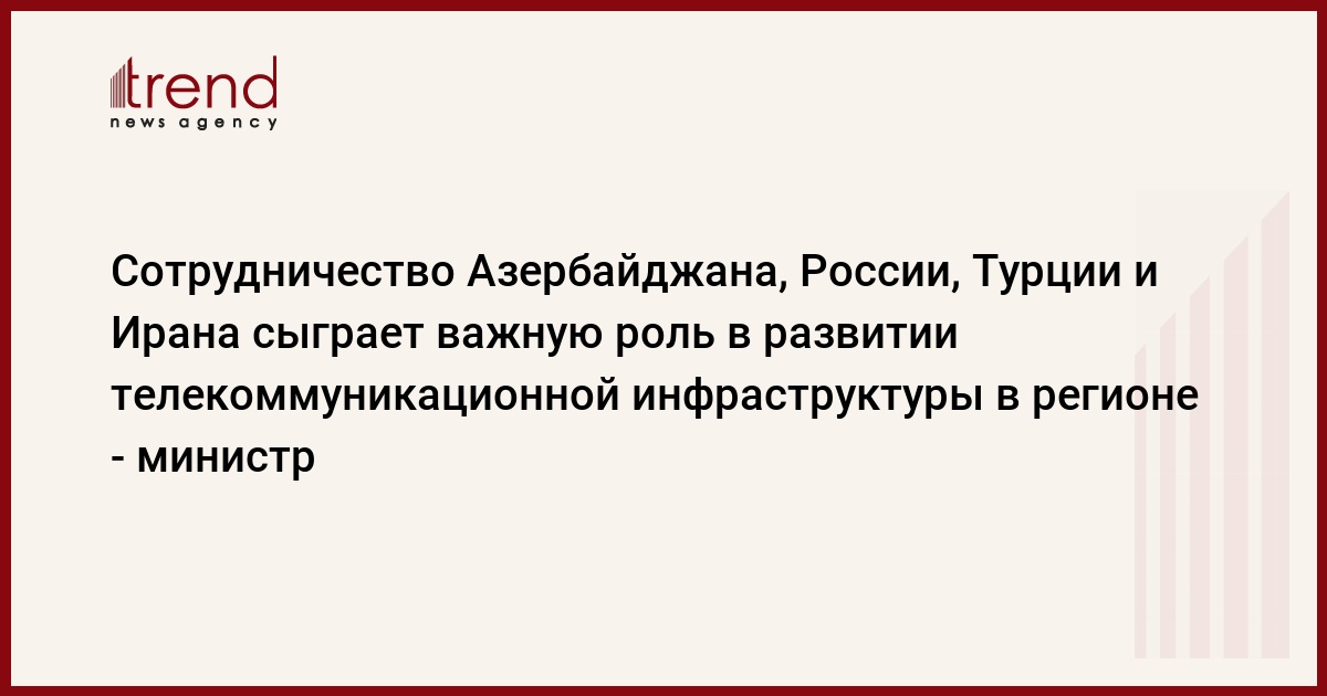 БАКУ /Trend/ - Сотрудничество министерств связи четырех стран (Азербайджана, России, Турции и Ирана) сыграет важную роль в развитии телекоммуникационной инфраструктуры в регионе, сказал во вторник журналистам министр транспорта и инфраструктуры Турции Мехмет Джахит Турхан по итогам встречи министров, прошедшей в рамках выставки Bakutel.