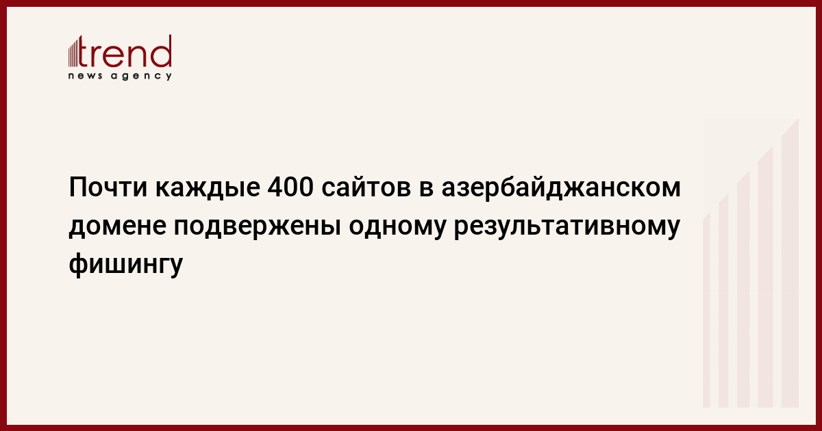 БАКУ /Trend/ - На 394 сайта в домене «.az» приходится одна результативная для мошенников фишинг-атака, что составляет 0,25 процента от общего числа атак, зарегистрированных в национальном домене интернет-ресурсов, говорится в отчете аналитической компании Netcraft, размещенном в четверг на сайте компании.