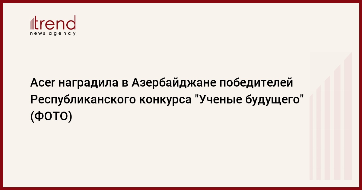 БАКУ /Trend/ - Компания Acer – один из мировых лидеров по производству компьютерной техники – вручила призы победителям VIII Республиканского конкурса «Ученые будущего» (“Sabahın alimləri”), который прошел 12-14 февраля в Азербайджанском техническом университете в рамках проекта министерства образования – SABAH. Компания Acer выступила в роли партнера данного конкурса, сообщает в пятницу Trend со ссылкой на компанию.