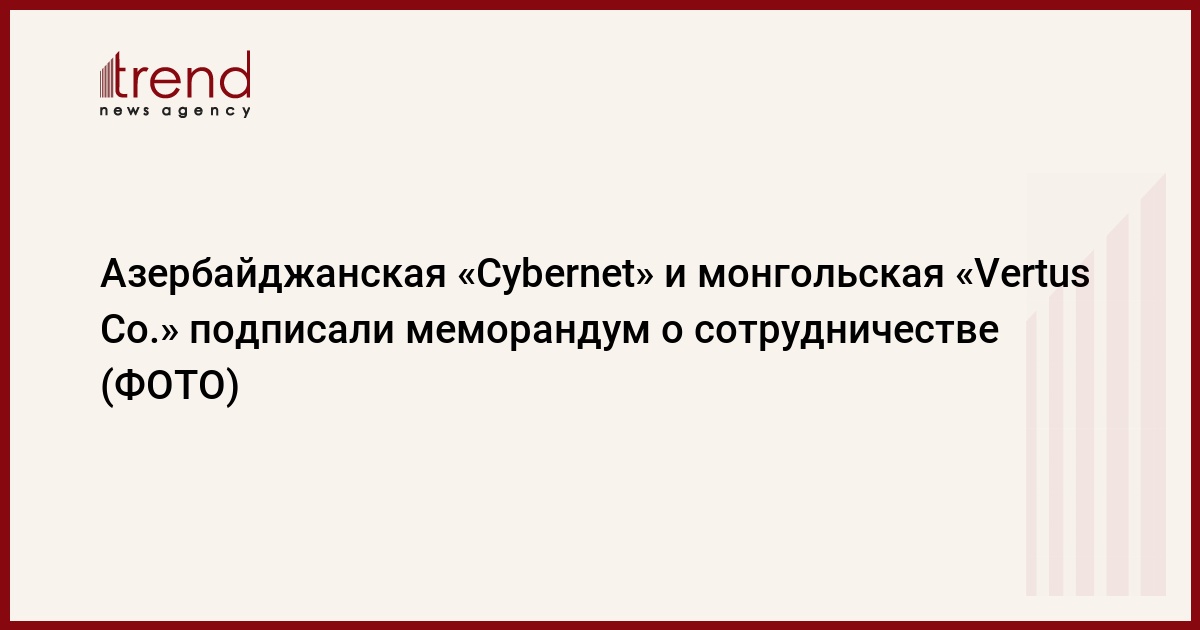 В рамках визита также состоялось подписание меморандума о взаимопонимании и сотрудничестве между «Cybernet» и монгольской компанией «Vertus Co.». Согласно данному документу, стороны будут сотрудничать в сферах IT-консалтинга, разработки стратегии развития информационных технологий и совершенствовании системы управления информационными технологиями, разработки программных продуктов в целях усовершенствования и эффективного формирования систем сельского хозяйства, автоматизации бизнеса с учетом внедрения ERP-систем, CRM-систем и BI-систем, а также разработки и внедрении мобильных технологий и решений для эффективной организации деятельности по предоставлению услуг в различных, в том числе государственных сферах.