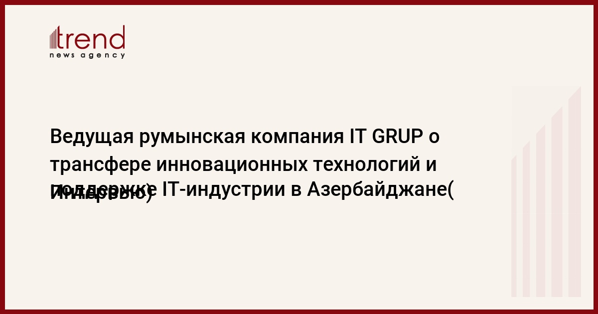 "Мы располагаем достаточными человеческими и финансовыми ресурсами для реализации проектов в IT-индустрии независимо от степени сложности. Нашей целью является сотрудничество с государственными и частными организациями и предложение им современных систем для облегчения управления их процессами. Мы открыты для сотрудничества со всеми организациями и готовы предложить им решения с высокой добавленной стоимостью. Потому что цель филиала IT GRUP в Азербайджане - это трансфер инновационных решений из Румынии в Азербайджан для местных заказчиков и их долгосрочная поддержка в IT-индустрии", - отметил он.