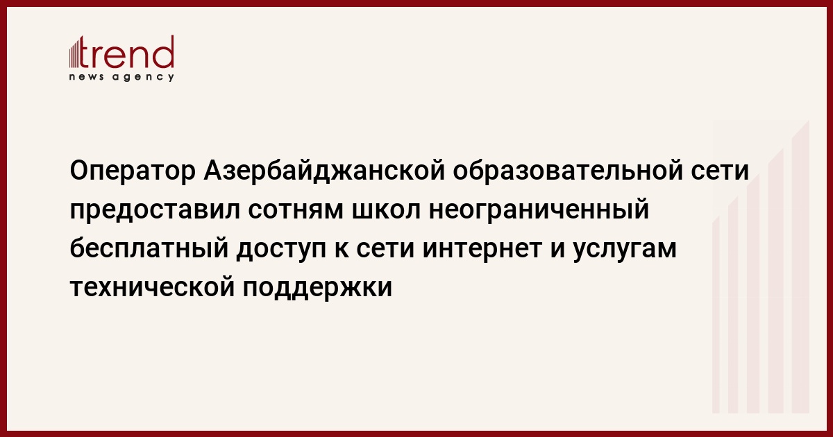 БАКУ/Trend/ - Оператор Азербайджанской образовательной сети компания AzEduNet в рамках сотрудничества с министерством образования Азербайджана и компанией Bakcell, предоставила учреждениям, отобранным для участия в проекте, неограниченный доступ к ресурсам сети и услугам технической поддержки, сказал Trend директор компании AzEduNet Натик Яхьяев.