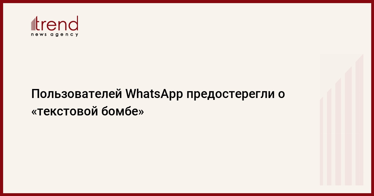 Пользователи WhatsApp обнаружили набор символов, который способен вывести мессенджер из строя, передает Trend со ссылкой на Гaзета.ru.