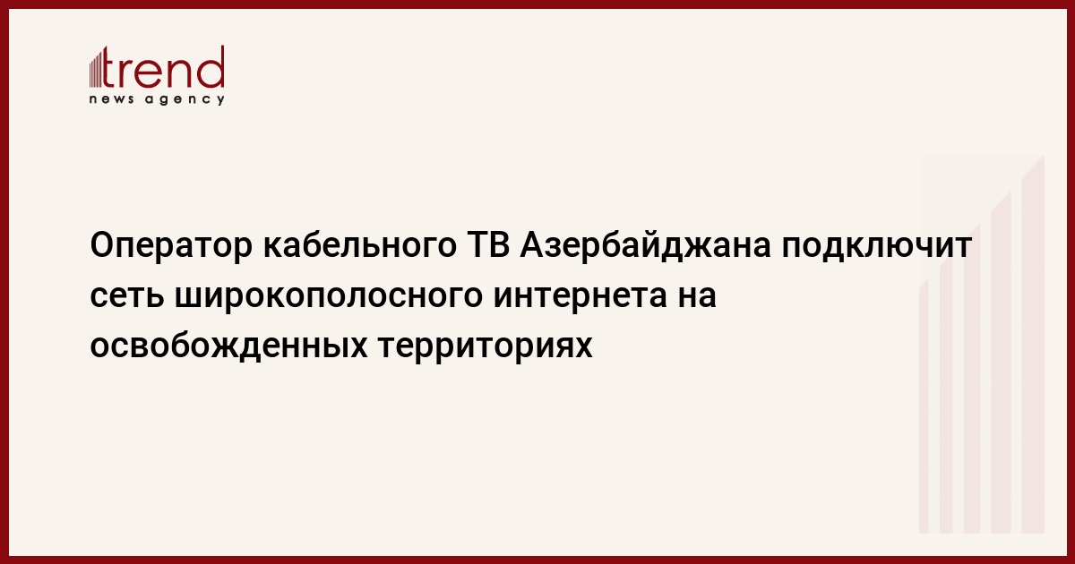 БАКУ /Trend/ - Компания KATV-1 готова развернуть сеть кабельного телевидения и широкополосного интернета на освобожденных территориях.