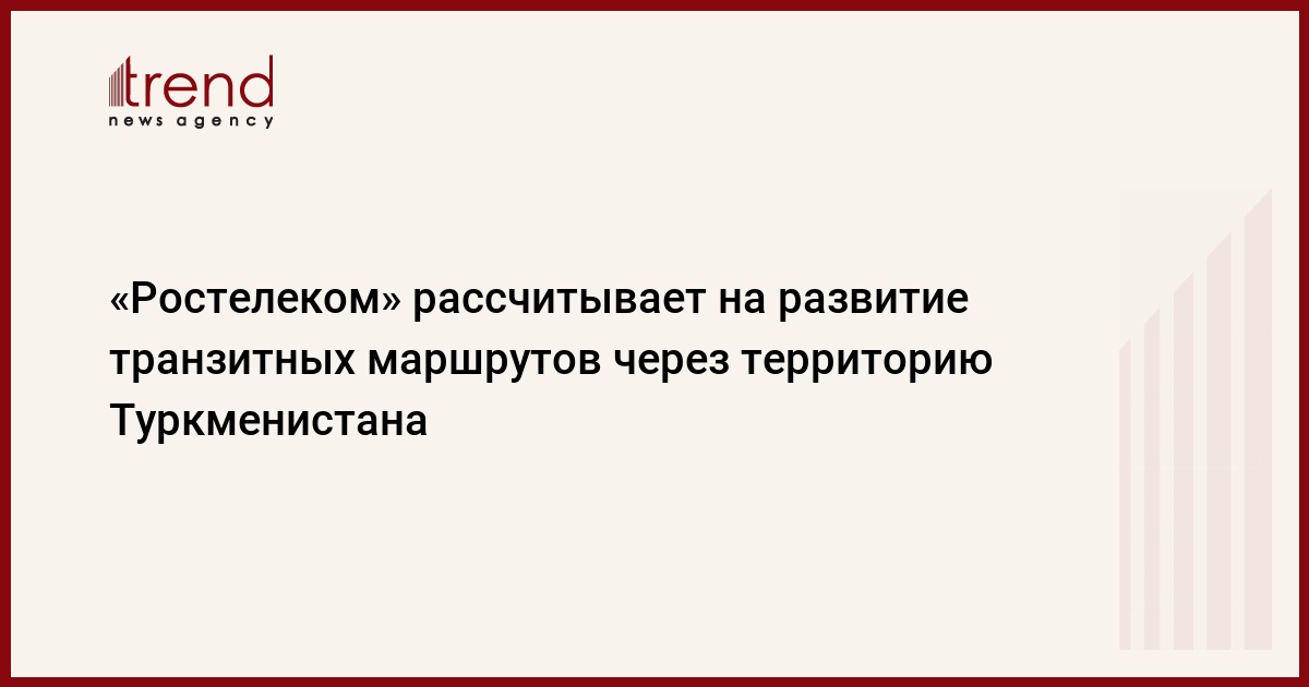 БАКУ /Trend/ - Оператор связи ПАО «Ростелеком» России рассчитывает на совместное развитие транзитных маршрутов через территорию Туркменистана.