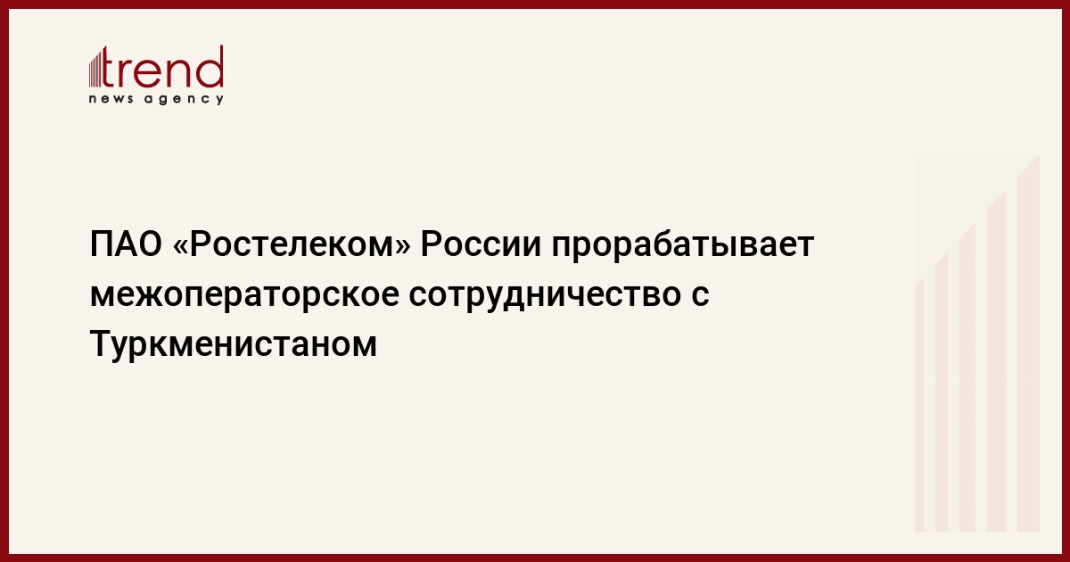БАКУ /Trend/ - Оператор связи России ПАО «Ростелеком» хочет преумножить сотрудничество с Туркменистаном, сказали Trend в «Ростелеком».