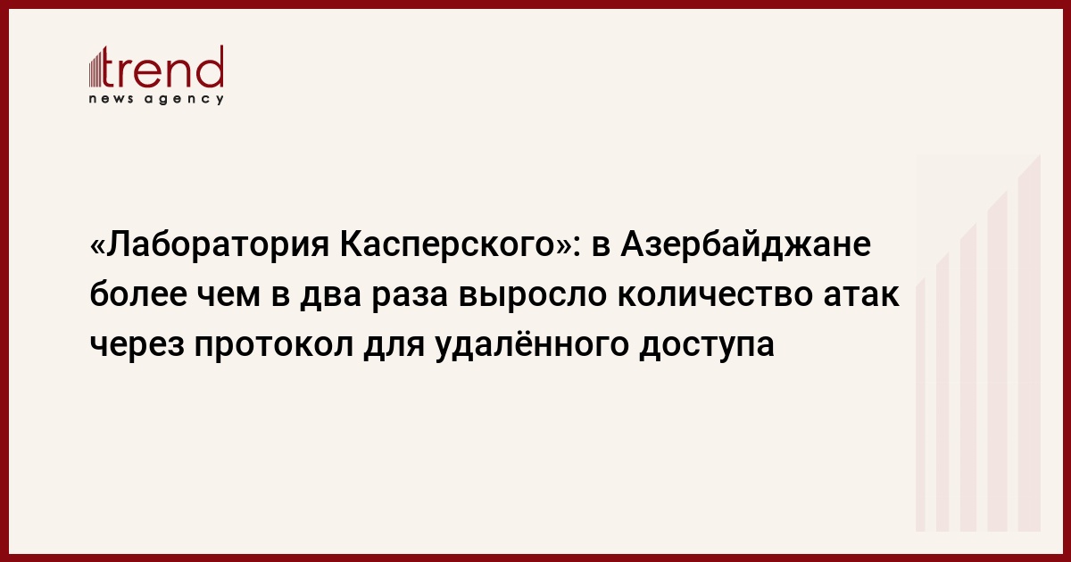 БАКУ/Trend/ - «Лаборатория Касперского» отмечает в 2020 году значительный рост атак через протокол для организации удалённой работы RDP. По данным отчёта компании «Удалёнка — история года»*, в Азербайджане с января по ноябрь было зафиксировано 2,2 миллиона таких атак. Это в 2,6 раз больше, чем за аналогичный период 2019 года.