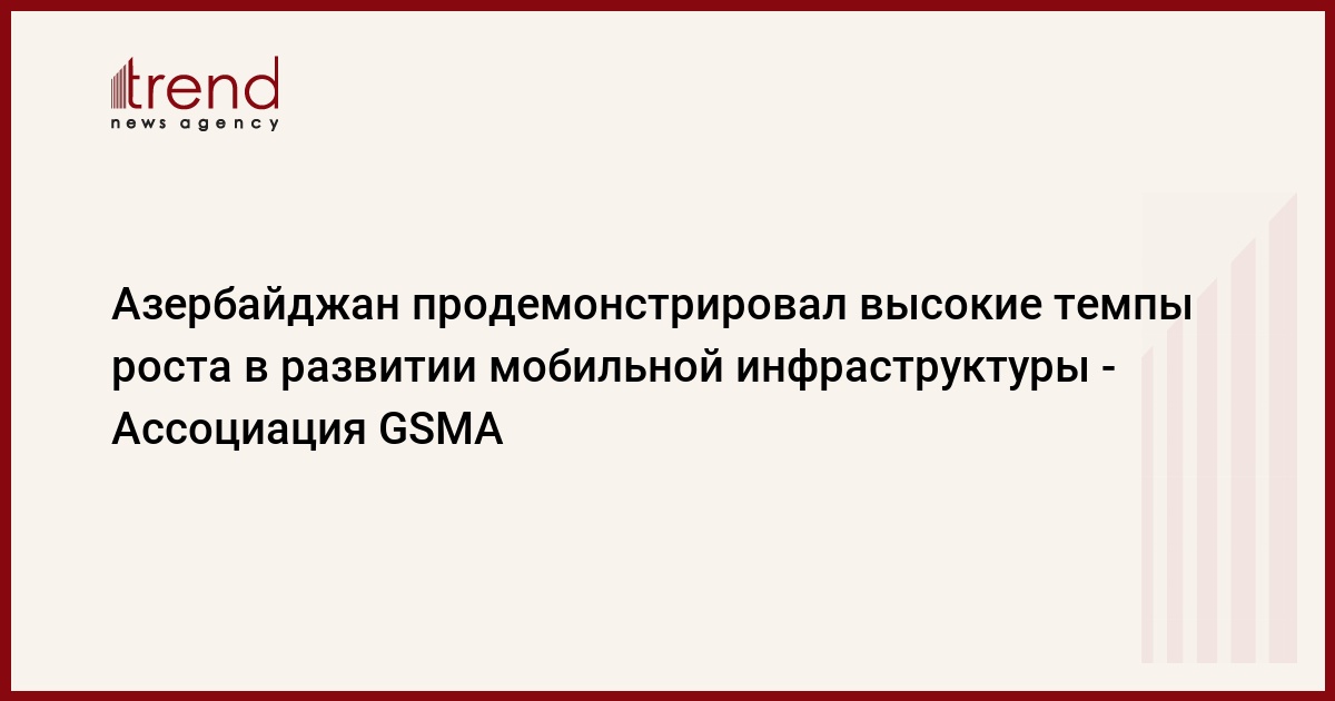 БАКУ /Trend/ - Азербайджан продемонстрировал высокие темпы роста в развитии мобильной инфраструктуры в регионе за последние пять лет, сказал Trend директор по стратегическому взаимодействию в России и СНГ Ассоциации GSMA (всемирная отраслевая ассоциация, объединяющая свыше 750 мобильных операторов в 218 странах мира - ред.) Таир Исмаилов.