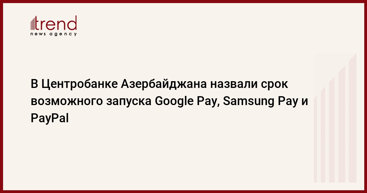 БАКУ /Trend/ - Платежные решения Google Pay, Samsung Pay и платежная система PayPal могут быть запущены в Азербайджане в 2022 году.