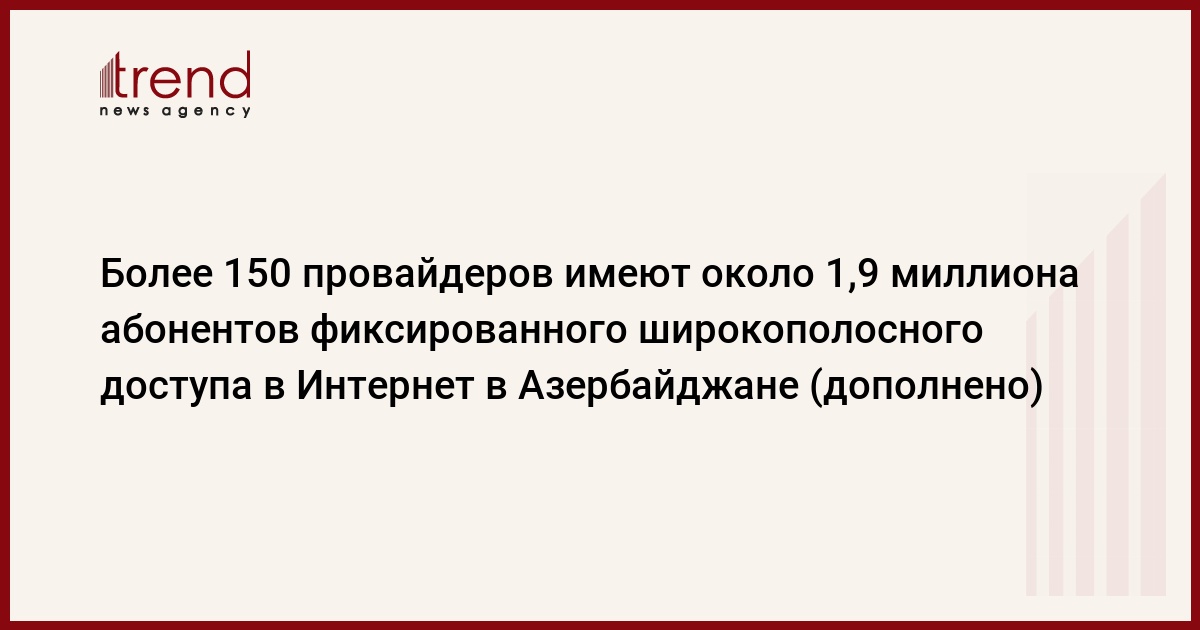 БАКУ /Trend/ - У более 150 интернет-операторов и провайдеров имеется около 1,9 миллиона абонентов фиксированного широкополосного доступа в интернет в Азербайджане.