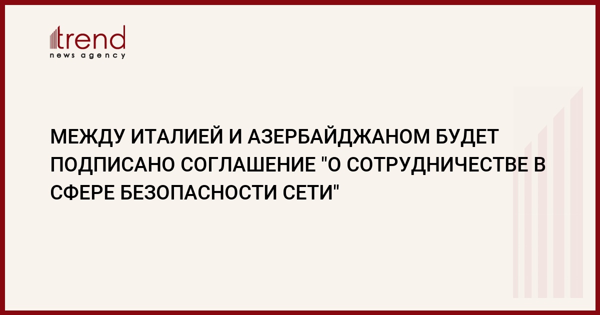 Между Италией и Азербайджаном будет подписано соглашение "О сотрудничестве в сфере безопасности сети". Как сообщили Trend в информационном центре Министерства связи и информационных технологий, соглашение планируется подписать к концу текущего года в рамках визита министра связи Али Аббасова в Италию.