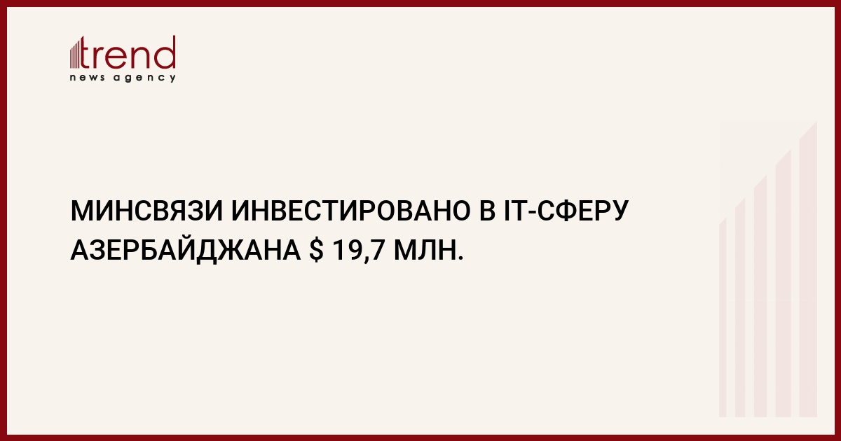 Следует отметить, что за весь текущий год Минсвязи планирует инвестировать в телекоммуникационную сферу Азербайджана 96,5 млрд. манатов (более $21 млн), оказать услуг в сфере связи населению и организациям в объеме 670,1 млрд. манатов ($146 млн) и перечислить в госбюджет средств на 100 млpд. манатов ($21,772 млн).