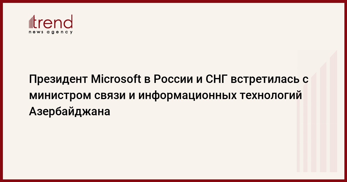 Hа этой неделе Баку с однодневным визитом посетила президент Microsoft в России и странах СHГ Ольга Дергунова, передает Trend со ссылкой на сообщение Microsoft.