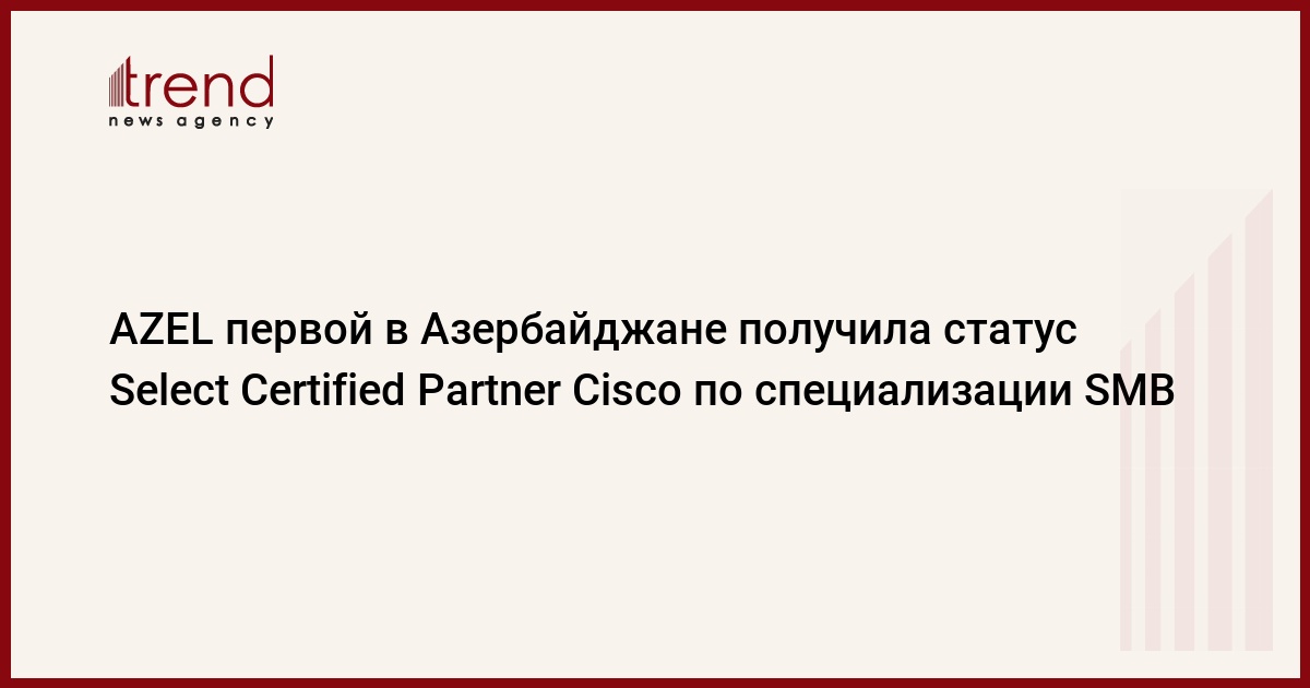 Азербайджан, Баку / Trend / Компания AZEL стала первой в Азербайджане компанией - обладателем статуса Select со специализацией SMB (Select Certified Partner with SMB specialization) Cisco.