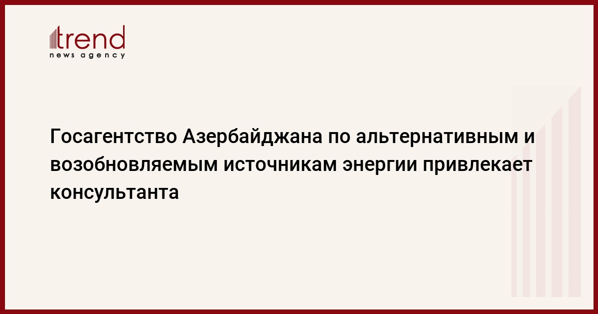 Государственное агентство Азербайджана по альтернативным и возобновляемым источникам энергии объявило тендер на закупку ряда консультационных услуг. Об этом говорится в сообщении тендерной комиссии, опубликованном во вторник в официальной печати.