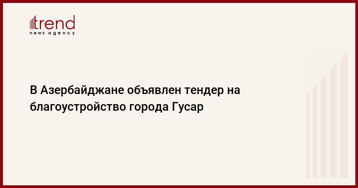 Представительство главы Исполнительной власти Гусарского района в Гусаре объявило тендер на проведение работ по благоустройству города в 2014 году. Об этом говорится в сообщении тендерной комиссии, опубликованном в воскресенье в официальной печати.