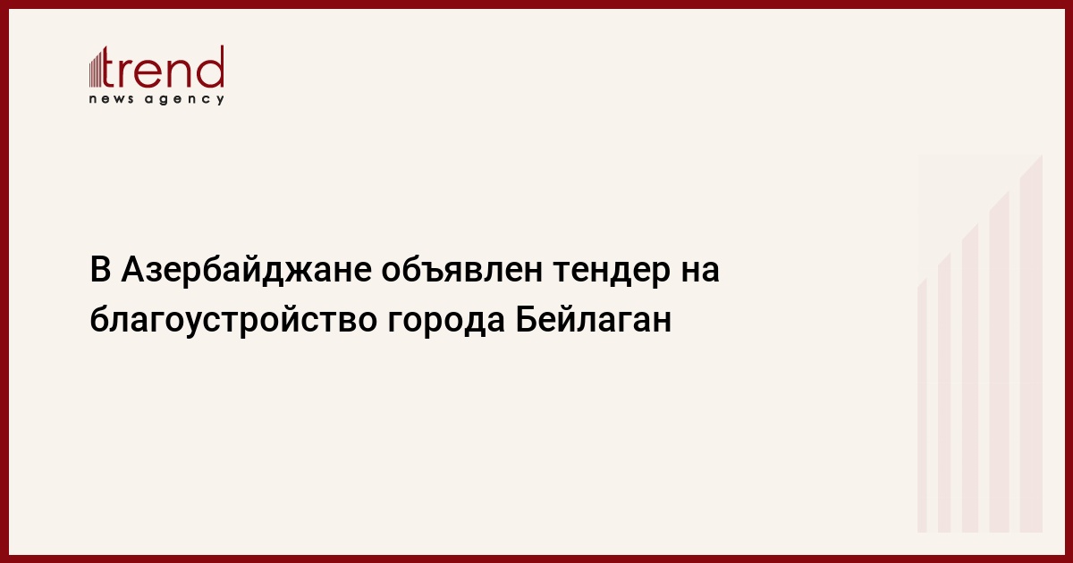 Представительство главы Исполнительной власти Бейлаганского района по городу Бейлаган объявило тендер на проведение работ по благоустройству. Об этом говорится в сообщении тендерной комиссии, опубликованном во вторник в официальной печати.