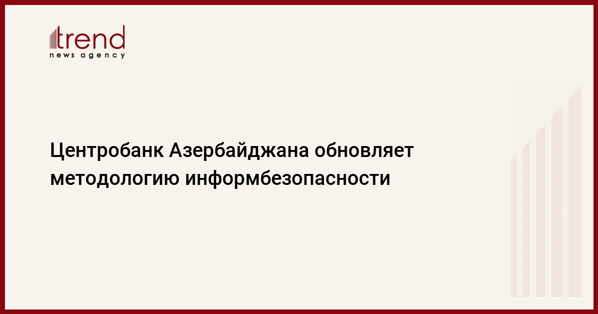 БАКУ/ Trend / - Центральный банк Азербайджана (ЦБА) объявил тендер на создание новой методологии информационной безопасности в соответствии со стандартом ISO 27001:2013 и подготовку планов восстановления и обеспечения устойчивости операций во время чрезвычайных ситуаций.